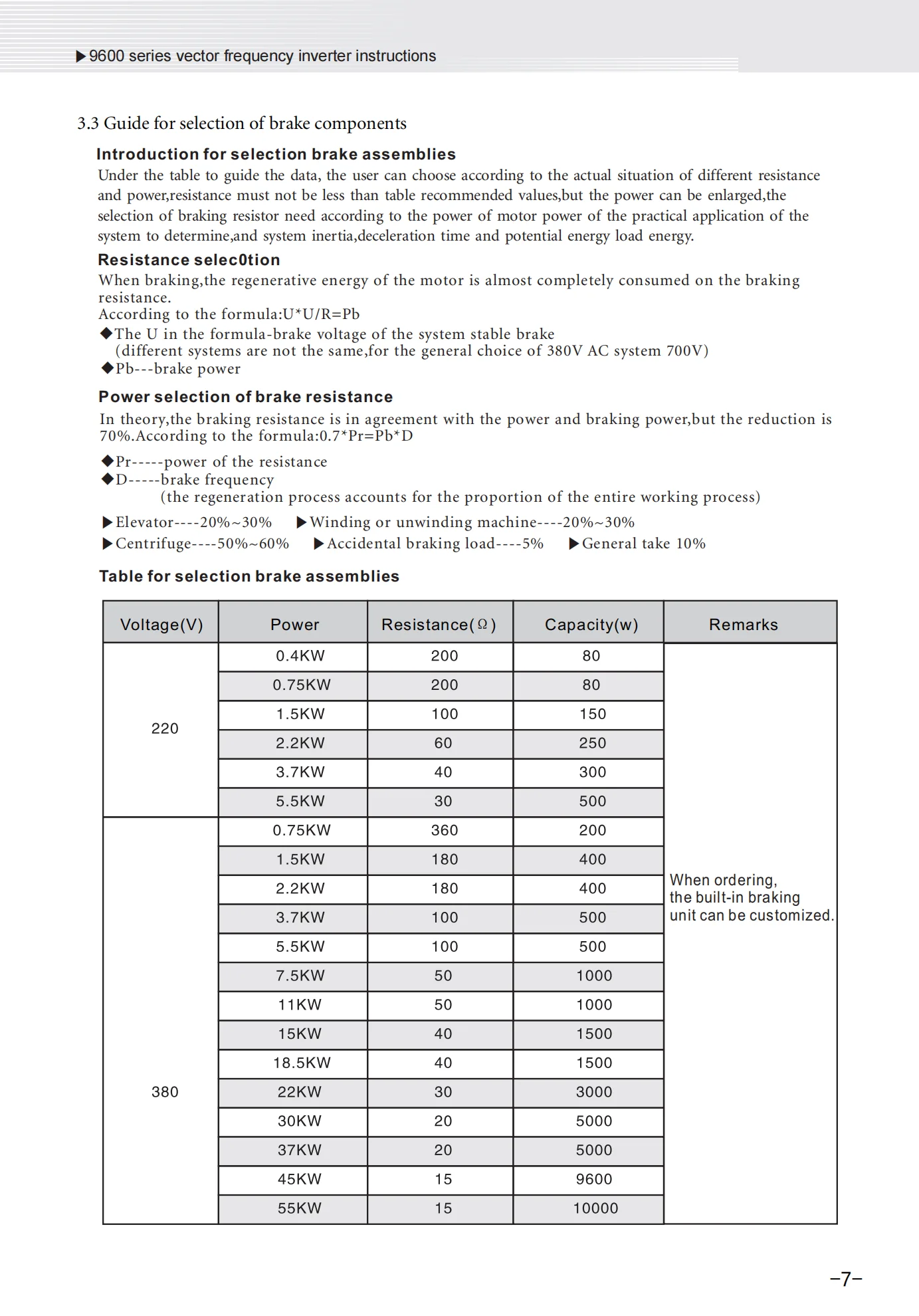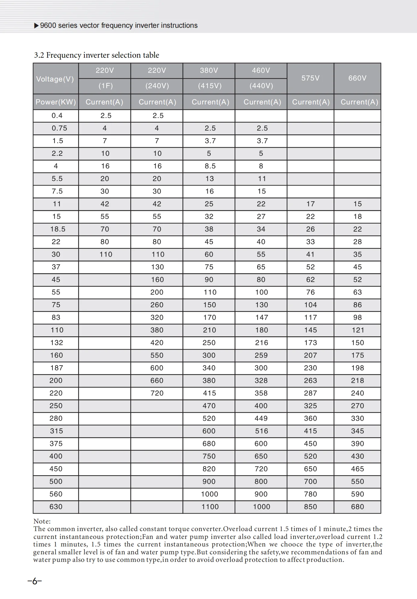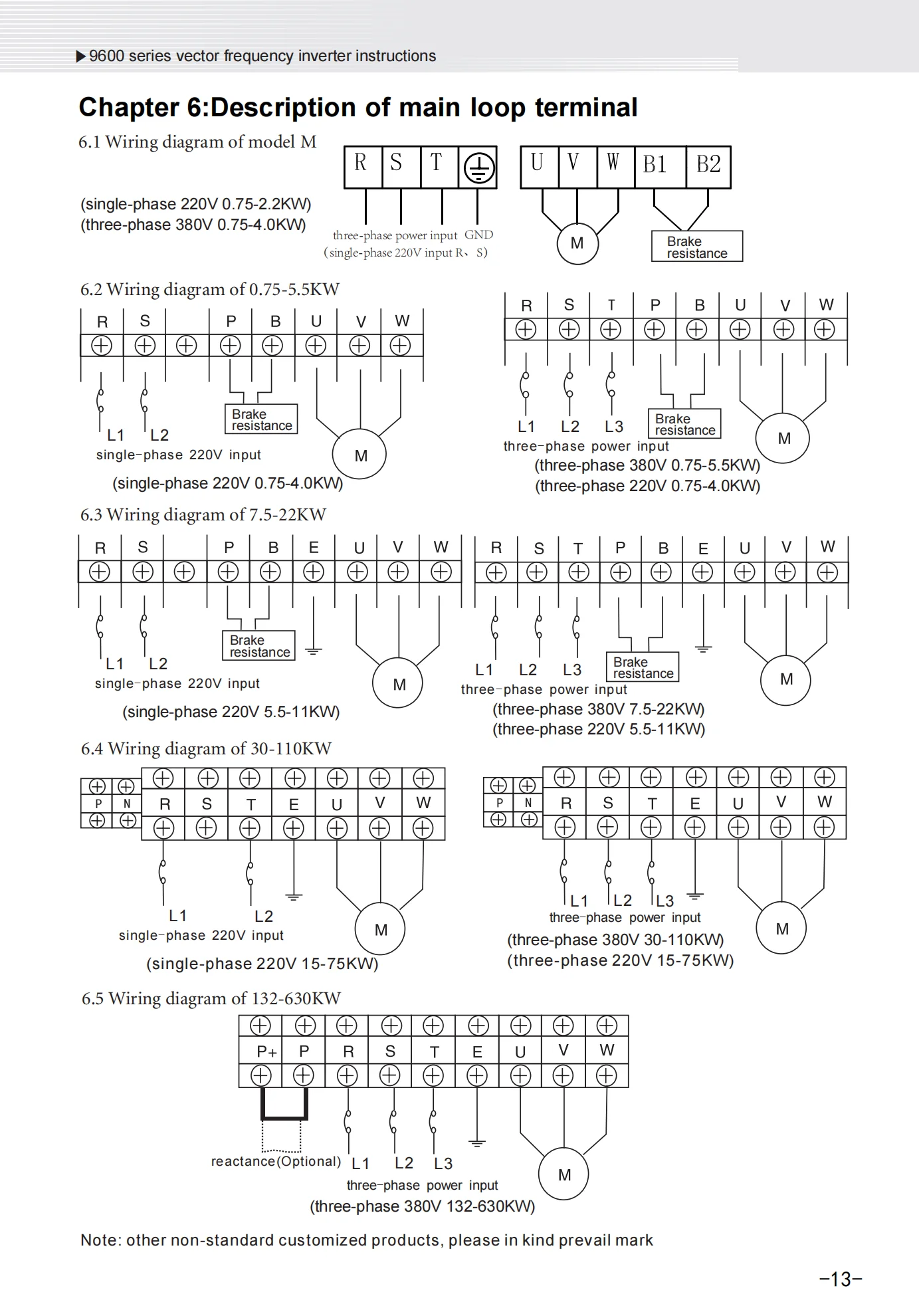 Potência do motor correspondente: 0,75KW / 1,5KW / 2,2KW / 4KW / 5,5KW / 7,5KW