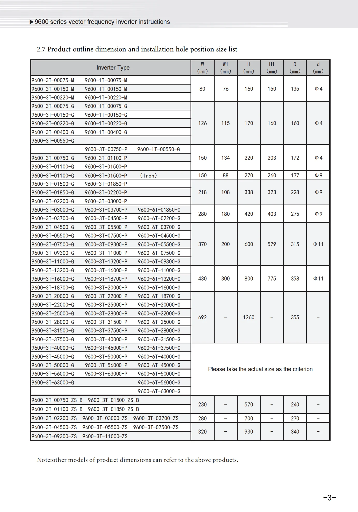 Modelo: 9600D-1T-00075G / 9600D-1T-00150G / 9600D-1T-00220G / 9600-1T-00400G / 9600-1T-00550G / 9600-1T-00750G